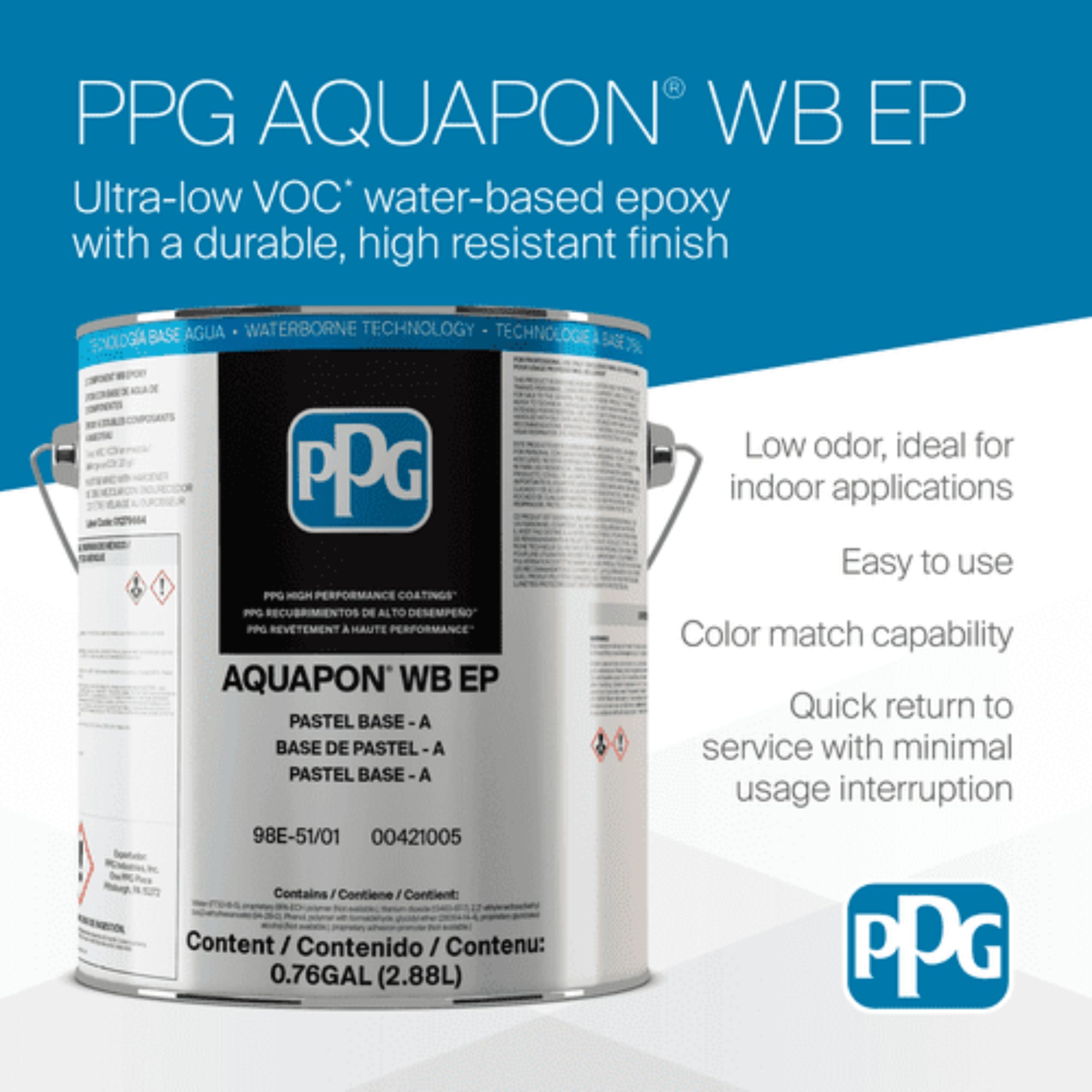 AQUAPON® WB Epoxy is a two-component, waterborne epoxy. It resists impacts, marring, and abrasions, as well as yellowing. It is suitable for floors and vertical surfaces.