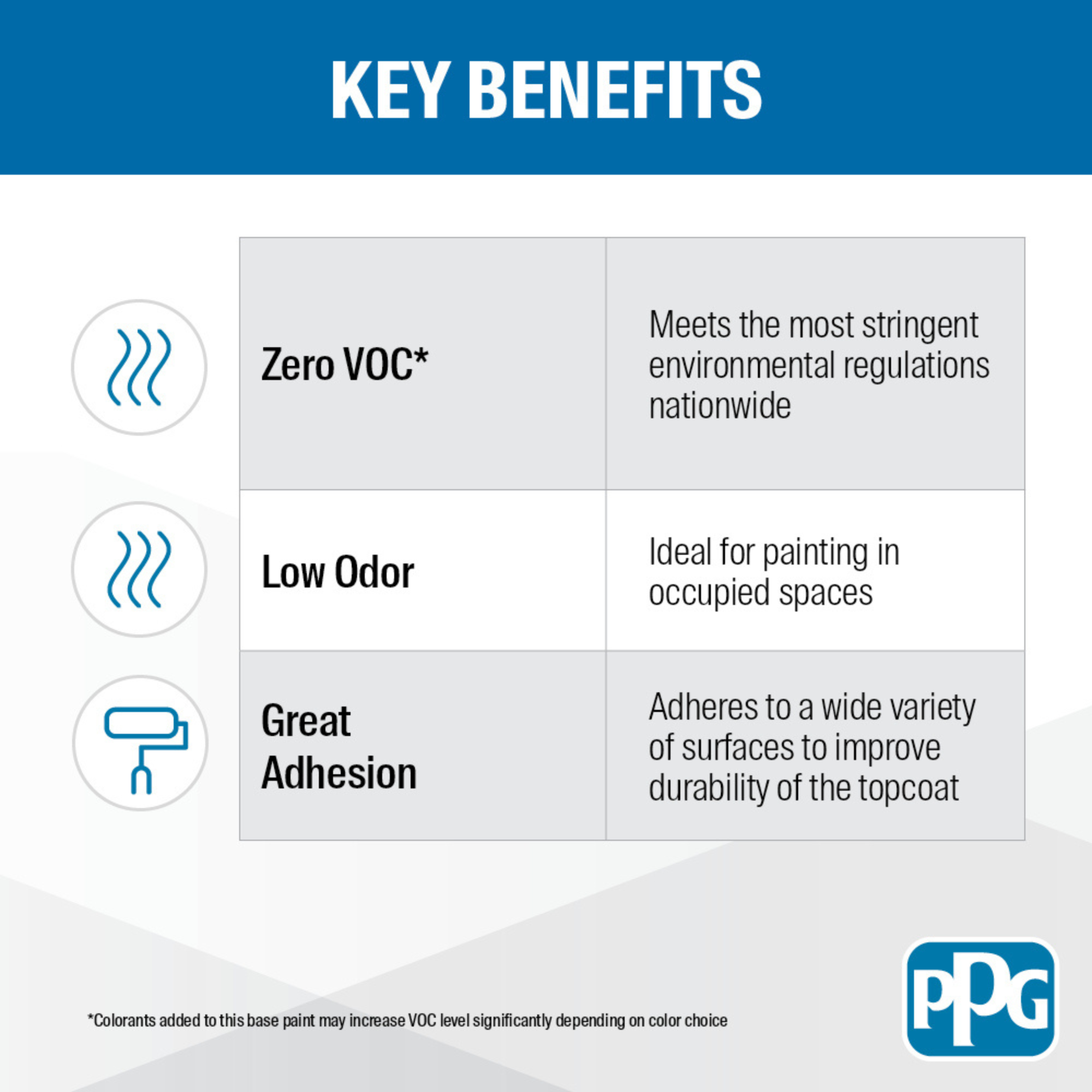 - Zero VOC* & Low Odor